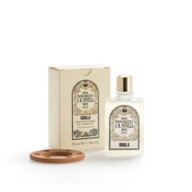 Extracts made from plants, resins and fine essences for an ideal, natural room fragrance. * Warning: This product is flammable. Do not ingest; do not apply on the skin. Store in a safe place out of reach of children. Avoid contact with wood, and metal. Instructions: pour a few drops on the terracotta ring (included in the box) and place it on ignited light bulb; the heat releases the fragrance. Otherwise, pour a few drops in a perfume burner or diffuser. 50ml - 1.7 FL.OZ. Made in Italy Olfactory Notes: sweet, warm notes of vanilla for a sensuous atmosphere. #santamarianovella#essentialoil#Roomfragr