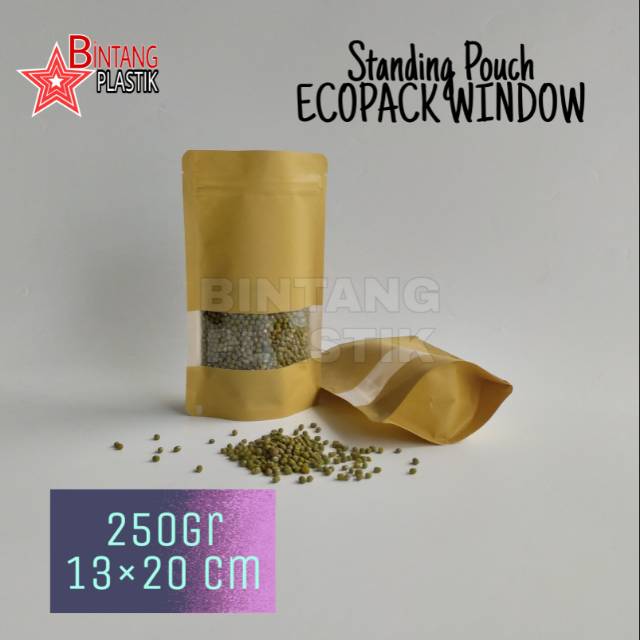 Distributor Perlengkapan di Kabupaten Blora Standing Pouch Paper Kraft Window 250gram 13x20 Cm Ecopack Kpack dari Bintangplastiksurabaya Kota Surabaya