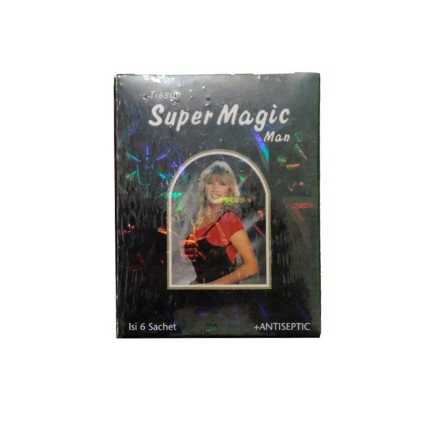 Khasiat :- Tissue Herbal Antiseptik Khusus Pria- Antiseptik, anti bakteri dan menjaga kesehatan alat vitalTissue Super Magic Man merupakan tissue herbal antiseptik yang dapat digunakan untuk menyegarkan serta membersihkan kulit dengan efektif.Terbuat dari kandungan Cocomidopropyl Betadine yang merupakan turunan dari minyak kelapa berkhasiat untuk membantu menjaga kebersihan kulit, sebagai antiseptik alami, higienis serta sehat.Tissue Super Magic Man aman digunakan tanpa adanya efek samping yang merugikan dan sudah memiliki nomor KEMKES RI 20501800032.Privasi dijamin:Privasi Anda adalah sangat penting bagi kami, nama dalam paket akan selalu kami kemas dengan private, Percayakan kepada kami soal pakingan, satu-satunya orang yang tahu apa yang ada dalam paket adalah Anda!Cara Pakai : Usapkan tissue pada daerah sensitive dan biarkan 5-15 menit. Sebelum berhubungan cuci dengan sabun dan bilas air hangat.Kemasan : 1 dus berisi 6 sachetDiproduksi Oleh : PT Dua Lima IndustriesBPOM No : KEMENKES RI PKD 2050180