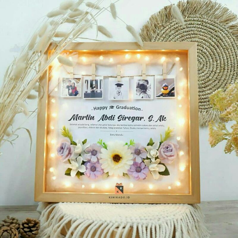 *MOHON DIBACA SAMPAI TUNTAS SEBELUM MEMESAN*JENIS PRODUK : Large Flowers With Lamp "Anti Pecah"Ukuran :32,5 x 32,5 x 4,5 cm (Large 3D)KADO SEGALA MOMENT- Wisuda/Graduation- Nikahan/Wedding- Anniversary- Ulangtahun/Birthday- Perpisahan- DllSPESIFIKASI PRODUK : - Bingkai 3D Kayu natural wood- Kaca Akrilik "Anti Pecah"- Sudah termasuk 6 foto - Warna bunga bisa request (warna dominan) atau akan di sesuaikan - Lampu bisa diganti-ganti mode nya- Tinggal di colok ke listrik (Panjang kabel +- 1 meter)KELEBIHAN PRODUK : - Menggunakan kaca akrilik "anti pecah" jadi aman untuk pengiriman jarak jauh- Bisa ditempel di dinding (ada pengait ganda)- Bisa juga diletakkan di meja- Awet seumur hidup dan tidak pudarPROSES PENGERJAAN & PENGIRIMAN :- Pengerjaan 3-4 hari kerja- Pengiriman dilakukan pada sore/malam hari- Sudah termasuk standard packing (Bubble wrap, Label fragile, Kotak dus, Kertas pembungkus)CARA ORDER : 1. Silahkan chat admin kami terlebih dahulu sebelum membeli2. Admin kami akan mengirim form pemesanan di chat3. Foto dikirimkan ke email kinikado.id@gmail.com4. Produk di proses5. Produk dikirimSelamat Berbelanja!Terima ka