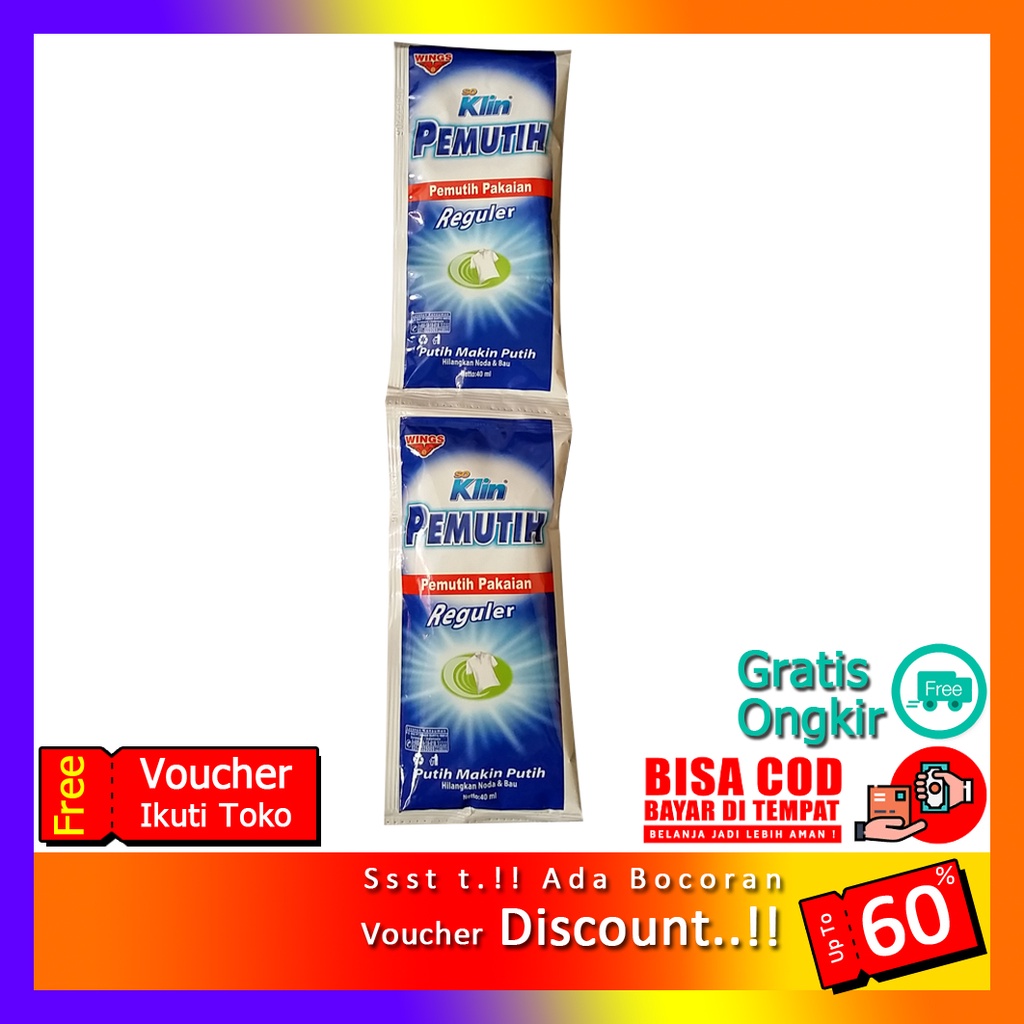 Promo | Soklin Pemutih Pakaian Kemasan Sachet 40 ml | MURAHDetail produk: Produk perawatan pakaian yang berfungsi untuk membuat pakaian berwarna putih menjadi lebih putih dan lebih cerah. Selain memutihkan, Soklin Pemutih juga berfungsi sebagai disinfektan yang membunuh bakteri, kuman dan jamur..Cara Penggunaan: - Sebagai pemutih, larutkan Soklin Pemutih dengan air. - Sebagai disinfektan, larutkan Soklin pemutih dengan 1 liter air. KEUNGGULAN: 1. Pakaian warna putih menjadi lebih putih dan lebih cerah. 2. Pakaian bebas kuman dan jamur. 3. Dapat berfungsi sebagai disinfektan.#soklinpemutih #pemutihpakaian #soklin #pakaianputih #pe