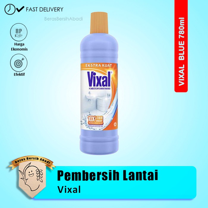 WELCOME !! ╰(*°▽°*)╯Pelanggan yang terhormat, Vixal Pembersih Porselen 780ml merupakan cairan pembersih porselen yang diformulasi mampu menghilangkan segala noda pada toilet, permukaan porselen, keramik, mosaik dan sejenisnya dengan cepat. Cairan pembersih porselen Vixal Blue diformulasi dengan formula kuat yang ampuh bersihkan noda dengan aroma yang harum, membuat lantai dan toilet rumah bersih dan harum. Selain itu, bagian dalam tutup botol dibuat khusus untuk memudahkan penuangan ke tempat yang diinginkan sehingga tidak tercecer dan lebih hemat. Cairan pembersih porselen dengan formula hydrochloric acid-nya efektif 10x lebih Tangguh membersihkan noda membandel bahkan noda karat sekalipun pada kamar mandi dengan permukaan porselen, keramik, mosaik dan sejenisnya. Vixal juga efektif menghilangkan bau tak sedap pada kamar mandi dan juga kuman penyebab penyakit yang berada pada kerak dan noda membandel. Tidak perlu tenaga extra untuk membersihkan kamar mandi jika menggunakan Vixal.PERHATIAN : 1. Hindari kontak dengan mata dan kulit, bila terkena mata/kulit bilas dengan air yang banyak dan segera ke dokter .2. Bila terminum,segera ke dokter dan tunjukkan kemasan produk.3. Jauhkan dari jangkauan anak-anak.4. Tidak cocok untuk Teraso, marmerCARA PEMAKAIAN :1. Buka tutup botol, iris ujung tutup bagian dalam.2. Noda ringan: semprot lantai atau permukaan yang akan dibersihkan dengan Vixal, diamkan selama 10-15 menit, kemudian basuh dengan air.3. Noda berat : Semprot permukaan yang kotor atau bernoda dengan Vixal, diamkan beberapa saat, gosok dengan sikat lalu basuh dengan air. Ulangi jika perlu4. Jangan dicampur dengan pembersih lainJangan Sungkan Untuk Bertanya terlebih dahulu kepada kami, Toko kami akan selalu memberikan yang terbaik bagi Anda! Oh ya, jangan lupa subscribe toko kami ya agar Anda mendapatkan update dan promo produk terbaru eksklusif dari kami ^^ (☞