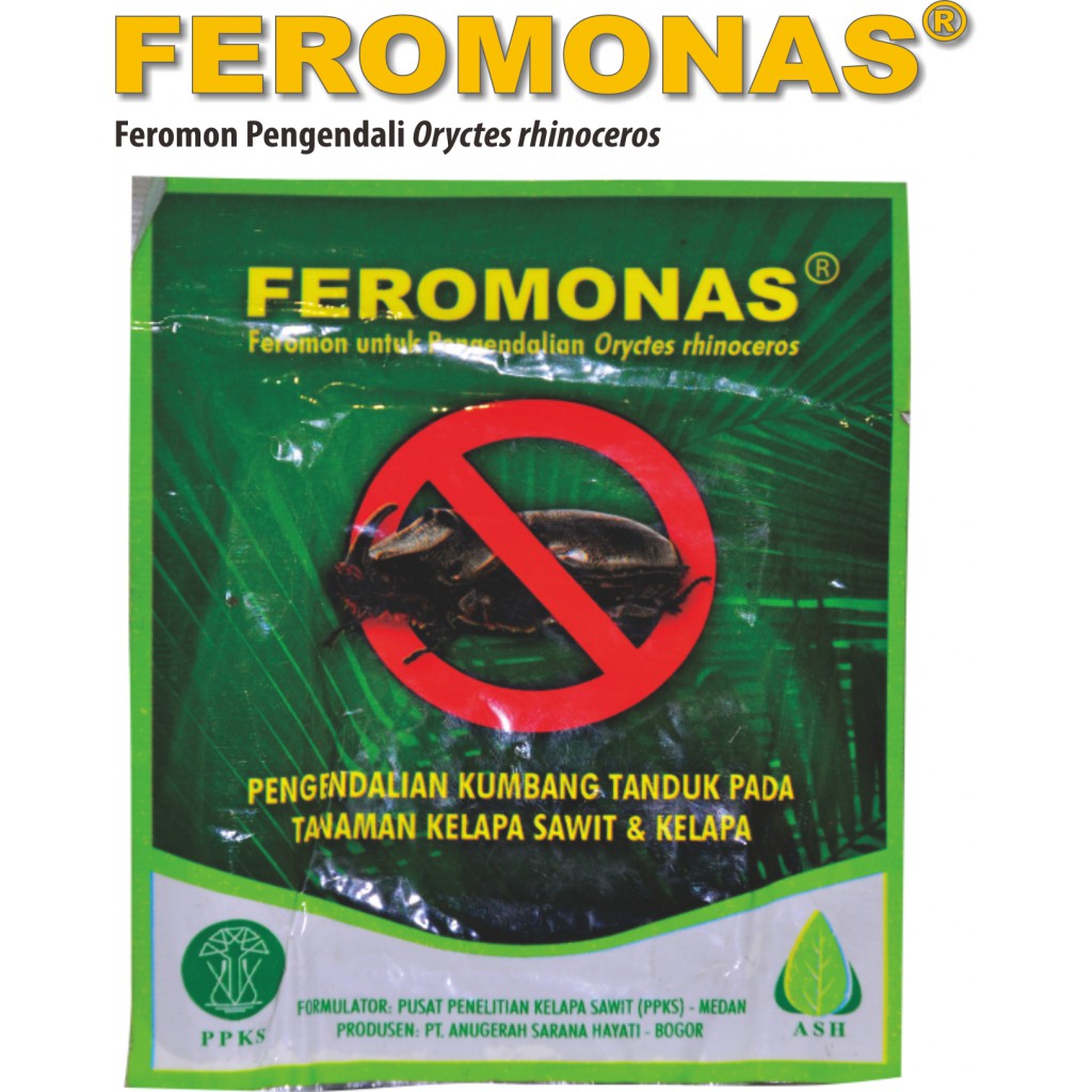 Feromonas berfungsi untuk pengendalian kumbang tanduk pada tanaman kelapa sawit dan kelapa.Cara Penggunaan :- sediakan ember plastik bertutup berukuran 20 liter.- lubangi tutup dan samping ember sebanyak 9 buah.- potong ujung kemasan, keluarkan kantong berpori feromonas.- gantungkan kantong berpori feromonas pada ember.- pasang ember pada tiang bambu setinggi 2.5 meter.- tempatkan tiang beserta embernya di tengah areal tanaman kelapa sawit pada setiap luasan 2 Hektar.NOTE : Tanyakan ketersediaan stock terlebih dahulu sebelum melakukan o