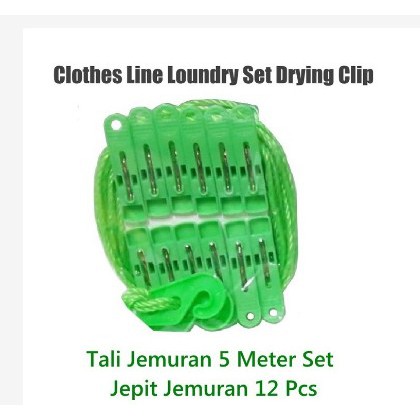 Tali Jemuran 5 meter Set 12 Pcs Jepit JemuranMencuci pakaian merupakan kegiatan sehari-hari para ibu" rumah tangga tentunya melakukan penjemuran pakaian setelah di lakukan pencucian baik dengan tangan secara manual maupun mencuci pakaian dengan mesin cuciKini hadir Tali jemuran set jepit jemuran yang mana tali jemuran ini memiliki kekuatan yang STRONG / KUAT terbuat dari material NYLON. mudah pengaplikasianya serta kuat tidak mudah putus walaupun terkena terik matahari maupun air hujanspesifikasi Produk :Tali jemuran Set Jepit jemuranMaterial Tali : NylonMaterial jepit : Plastick PPPanjang Tali : 5 Meter Set + 12 pcs jepit jemuranwarna : hijau MudaMiliki Tali jemuran set jepit jemuran guna keperluan ibu' / istri anda di rumah guna melakukan penjemuran pakaian setelah di cuci. Mudah pengunaanya bisa di pindah" sesuai keinginan, serta memiliki keKuatan yang baik mudah , praktis , kuat dan awet.#Shopee22Me