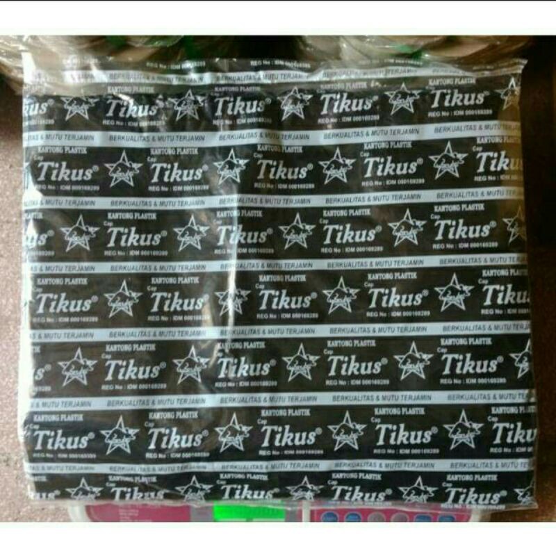 Hd Kantong KresekHitamMerk : TikusUkuran : 24x48 ( TANGGUNG / SEDANG )Isi : 30 lmbr (per pak)Berat : ± 75 Gram (per pak)Harga yg Tertera