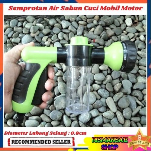 Semprotan Air Sabun Cuci Mobil - RK-S4H1* Warna Hijau* Dimensi Diameter Lubang Selang : 0.8cmAlat ini berfungsi untuk memudahkan Anda mencuci mobil dan menyiram tanaman. Anda dapat mengganti pola semprotan air dengan memutar kepala semprotan. Juga memiliki tempat sabun sehingga air yang disemprot dapat bercampur langsung dengan sabun dan berguna untuk mencuci mobil.Spray Semprotan Air dengan 8 jenis model semprotan yang dapat diganti dengan memutar ujung spray.Semprotan air juga dilengkapi dengan dispenser tabung sabun cair sehingga dapat di atur apakah semprotan akan mengeluarkan air saja atau air sabun.Dengan semprotan air ini, Anda dapat membersihkan mobil, menyiram tanaman dan aktifitas lainnya dengan mudah dan c