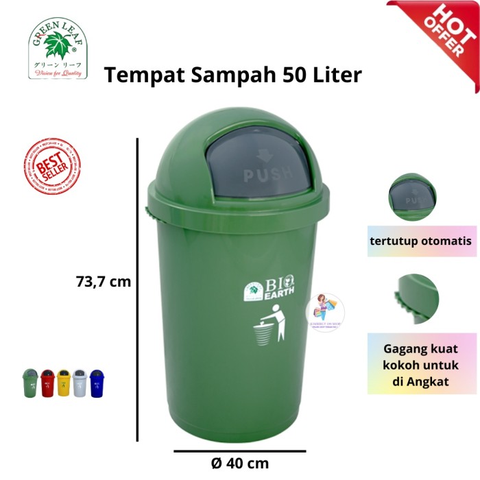 TOKO BERGARANSI..tong sampah bulat bio 50 liter green leaf 2150Size : 40 x 73,7 cmVolume : 50 Cocok, nyaman, dan dijamin tahan lama karena bahannya tebal & kuatTidak terdapat ember di dalamnyaWarna :Hijau,Merah,Kuning,Abu Abu dan BiruPada saat pemesanan barang, jika menginginkan warna tertentu silahkan cantumkan warna pilihan di kolom keterangan, bukan via chat (tidak melayani pilihan warna via chat yah)Cantumkan warna pilihan utama dan warna pilihan cadangan.Jika warna pilihan stocknya kosong, akan kami kirimkan warna dgn stock yang ready.Jika tidak mencantumkan warna pilihan, akan kami kirim warna random.Terima kasih sekali untuk customer yang tidak pilih warna, krn sangat membantu proses pengiriman bara