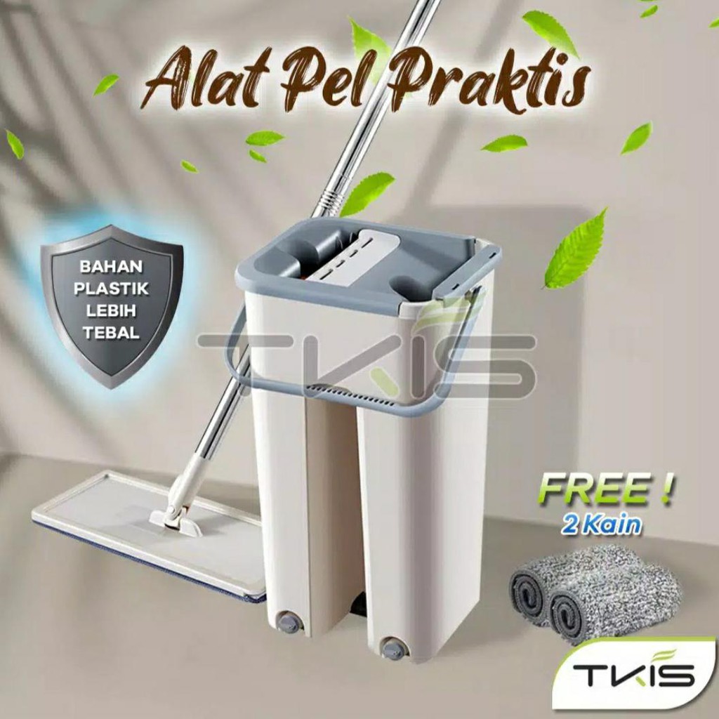 Deskripsi Pel Lantai Mop Plus Ember Gratis 2 kain, Alat Pel Praktis D01Alat Pel Praktis ini merupakan alat pembersih lantai dengan kain pel yangberkualitas, lembut dan mempunyai daya serap tinggi, sehingga dapat membersihkanlantai dengan bersih dan cepat.Kegunaan :1. Mempunyai bucket dengan 2 sekat terpisah (DRY & WASH)2. Bisa digerakkan 360 derajat, sehingga dapat membersihkan di segala sudutruangan Anda.3. Kain pel berbahan serat mikro yang dapat menyerap sempurna.4. Bisa digunakan untuk membersihkan noda kering dan basah5. Terdapat lubang pembuangan airCara Pemasangan :1. Masukan kedalam 3 kaitan yang tersedia,2. Keratkan pada seluruh permukaan,3. Pastikan semua permukaan sudah menempel4. Masukan air kedalam ember,5. Bersihkan di bagian pembersih,6. Bilasdi bagian membilas,7. Lepaskan tutup pembuangan air untuk menguras airDeskripsi Produk :* 2 buah kain pel ukuran 33cmx12cm* 1 set tongkat pel ukuran 128cm* 1 buah ember ukuran 37cmx20cm