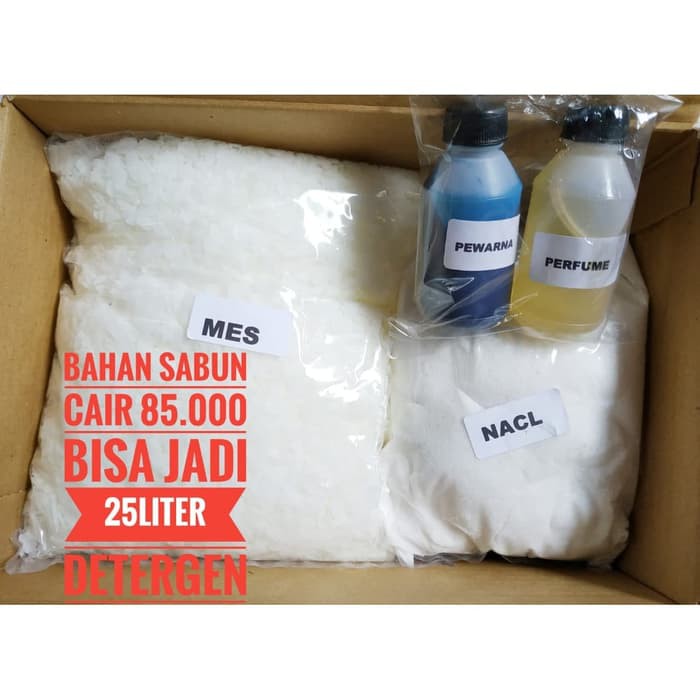 .Deterjen Cair Ramah Lingkungan Bahan MES paket | SB pemulaDeskripsi Deterjen Cair Ramah Lingkungan Bahan MES Paket 20 literDeterjen Cair Ramah Lingkungan Bahan MES Paket 20 literyang didapat :1. Deterjen MES2. Biang Parfum3. NACl3. PewarnaCara membuatnya sangat mudah :1 Panaskan air hingga mendidih2. larutkan deterjen3. Tambahkan garam halus4. tambahkan pewarna5. tambahkan p