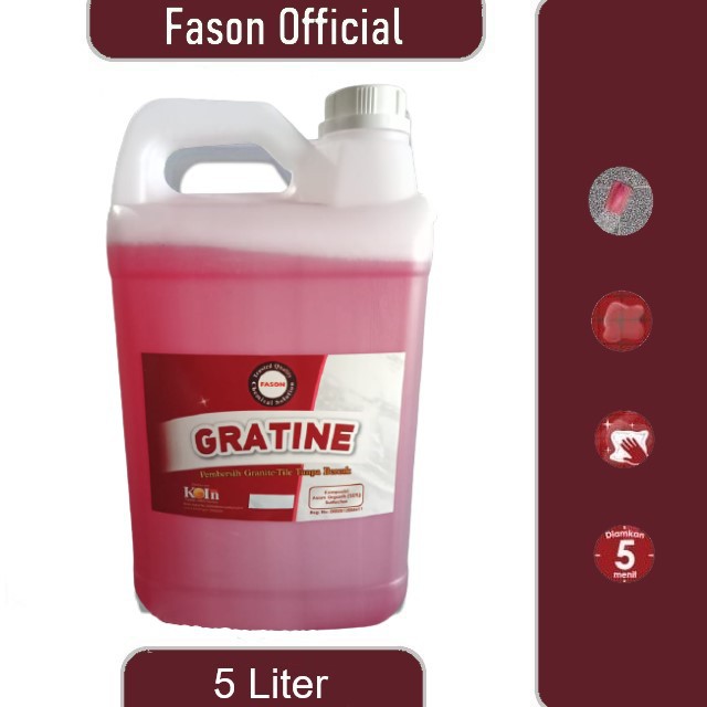 Pembersih Granite Tile yang ACID-NYA berfungsi ganda :1. Sebagai pembersih dari kotoran noda bertumpuk seperti :- Lapisan kerak sabun ,- Kerak dapur,- Noda karat,- Kerak air,- Mineral deposit ,- Tumpukan daki minyak dan - Noda membandel lainnya 2. Menghilangkan bau tak sedap akibat KUMAN dan KOTORAN TAK KASAT MATA Gunakan FASON GRATINE untuk membersihkan lantai INDOOR , lantai dan kaca KAMAR MANDI , BATHTUBE , URINOR , perabot STAINLESS , dan TOILET