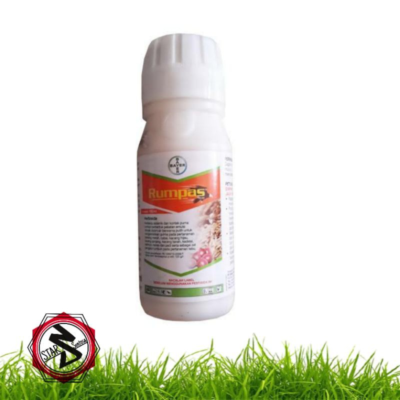 Rumpas 120EW 100ml*Golongan: Herbisida*Cara Kerja : Kontak Sistemik purna tumbuh*Untuk Tanaman: Bawang Merah, Cabai, Kedelai, Kacang Panjang, Timun*Penyakit Sasaran: gulma berdaun lebar dan sempit*Penyemprotan:- Rekomendasi Waktu: Pagi hari- Rekomendasi Dosis: 1,5 – 3 atau 21ml – 42ml per tengki 14 liter- Rekomendasi Lainnya: campurkan dengan perekat dan perata agar obat tercampur dengan air lebih merata dan tidak luntur saat terkena hujan.Bahan Aktif: fenoksaprop-p-etil (fenoxaprop-P-ethyl) : 120 g/l#herbisida #obatrumputsele